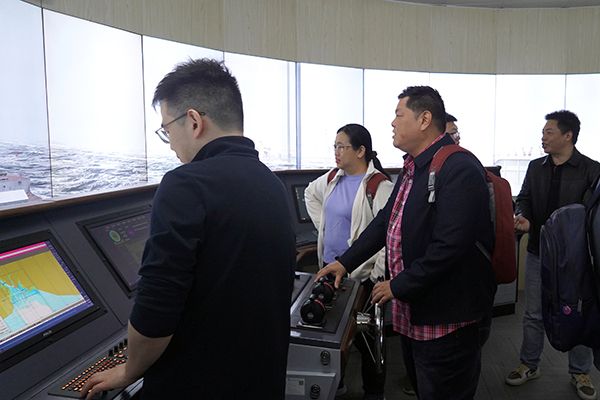 梁华俊教授一行参观航海模拟一体化实验室