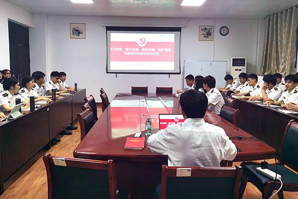 4月14日晚上19:00,海运学院在7B-219教室展开“认真学习党章,严格遵守党章;党的先进性和纯洁性”为主题的预备党员党课培训。教育学院党委书记叶汝坤副教授为主讲人,海运学院全体预备党员参与听课。