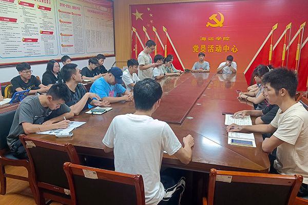 2023年10月27日下午18:20,海运学院学生党支部在7栋218会议室召开10月份专题学习研讨会,会议由学生党支部副书记张明杨同志主持,支部全体党员同志参加学习。