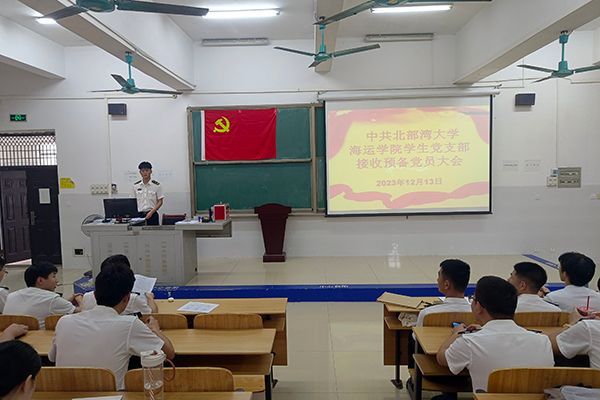 12月13日下午,海运学院学生党支部在7B-215教室召开2023年秋季预备党员接收大会,讨论关于接收徐李博等6名发展对象为预备党员的相关事宜。会议由党支部书记邓钧文同志主持,全体党员参加会议。