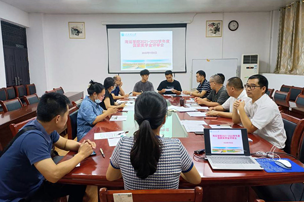 2022年9月8日下午,海运学院在7B219会议室举行2021-2022学年度国家奖学金评审会议。出席会议的有包括党委书记张小军、院长万红在内的海运学院国家奖学金评审小组所有成员。会议由董海亮副书记主持。