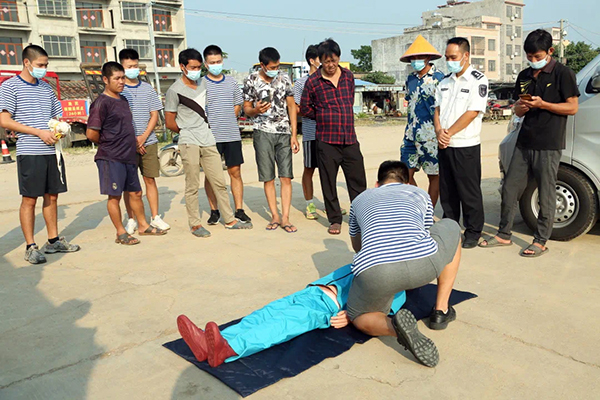 此次活动由海运学院党委副书记董海亮、学工办主任陈婧、半军事管理吴宗兵老师带队指导,海运学院学生会主席庞宝初组织落实。首先,宣讲团全体成员与钦州市渔政渔港监督支队犀牛脚大队工作人员、渔业协会工作人员、渔船从业人员举行座谈会。会后,钦州市渔政渔港监督支队犀牛脚大队黄队长向宣讲团展示GPS北斗海船定位,讲解船舶跟踪管理系统如何进行航迹跟踪,实时展示船舶航迹路线。随后,宣讲团成员对渔船从业人员开展急救知识普及,包括心肺复苏的现场演示以及突发性受伤的伤口包扎方法。最后,宣讲团成员给渔船从业进行避碰规则知识的讲解,并发放安全宣传手册,悬挂安全警示横幅等。