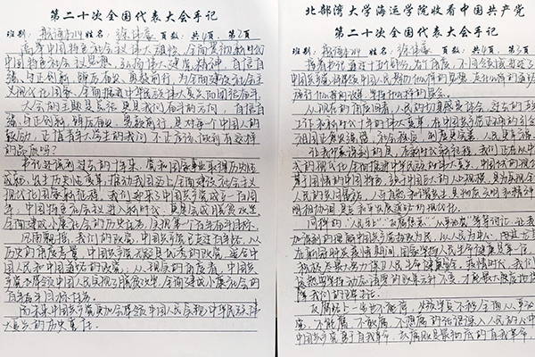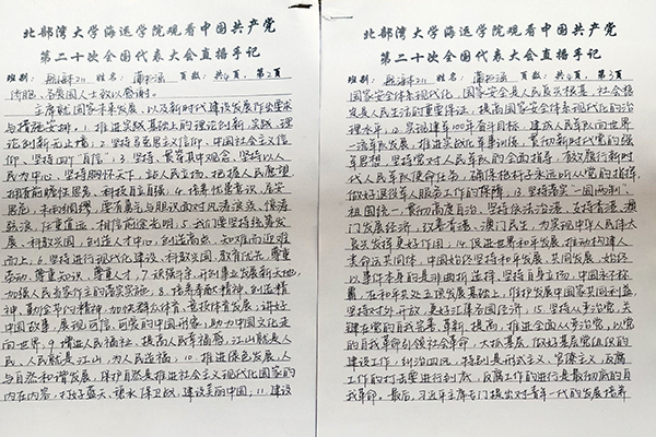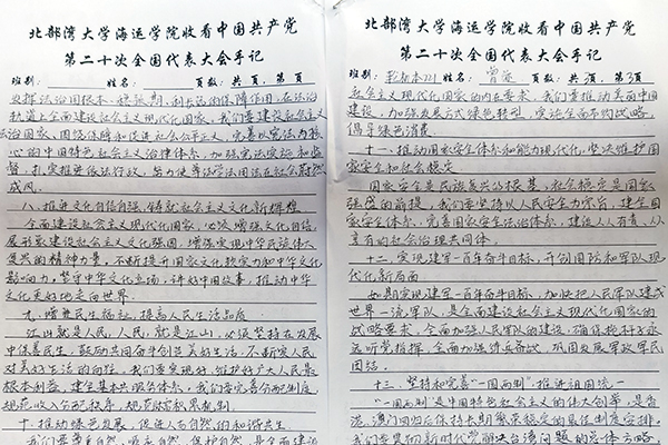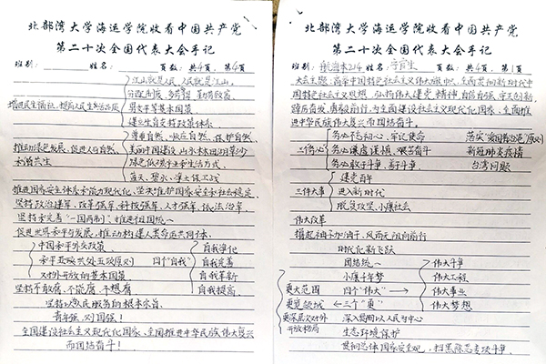 此次评选出的优秀手记将进行网络展示,这不仅是对认真记笔记同学的肯定与鼓励,也是对全体同学的鞭策与引导,“党的二十大”的胜利召开吹响了新时代的号角,也吹响了求是青年继往开来、继续奋斗新征程的号角。相信全体海运青年一定不负使命,在激扬青春的征程中绽放青春光芒,贡献青春力量!(审核:张小军)