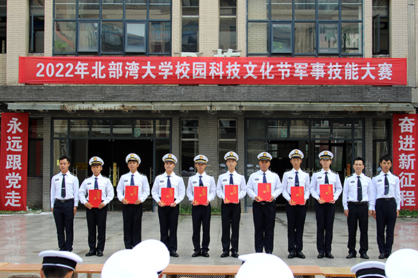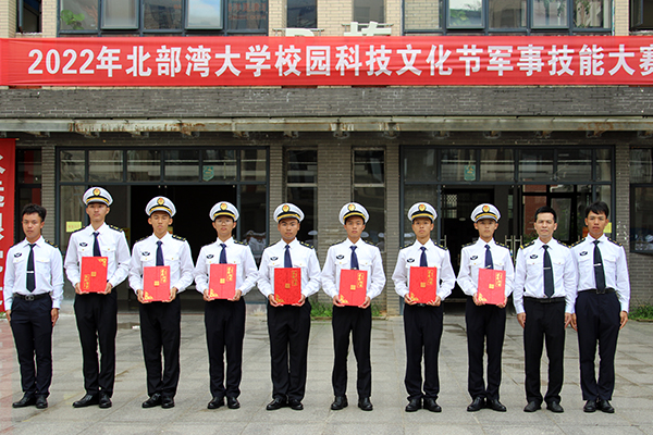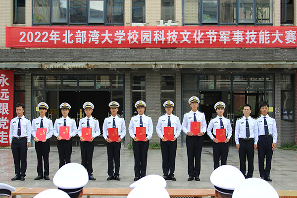 11月27日下午,海运学院于7号教学楼中庭成功举办了“2022年北部湾大学校园科技文化节军事技能大赛”。本次比赛由海运学院半军事化管理22级中队长代福龙主持,参与活动的单位有:22级各区队队列班、海运学院旗语队、拳术队等。海运学院半军事化管理负责人吴宗兵老师作为指导老师和评委亲临指导。陈小林、王志聪等半军管骨干担任此次军事技能大赛的评委。