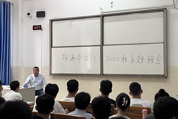 为贯彻落实深入基层联系学生工作制度,全面落实立德树人根本任务,提升“三全育人”工作质量。11月3日下午,院长万红参加航海本213班的主题班会并在班会后和学生进行座谈。活动在13-112教室举行,航海本213班主任朱守臣和全班同学参加了会议,班会由班主任朱守臣老师主持。