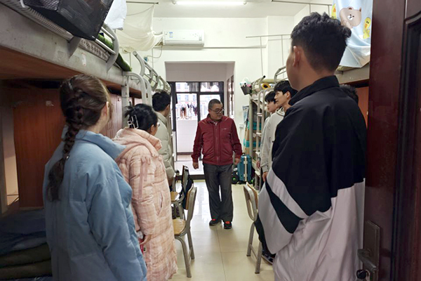 张书记一间一间宿舍现场查看了同学们的住宿环境,详细询问了同学们近期的思想、学习与生活情况,并围绕疫情防控政策、宿舍生活条件、学校后勤服务保障等问题,了解了同学们提出的建议,全面了解学生的思想动态。张书记叮嘱同学们:要严格遵守校规校纪,严禁使用大功率电器,在日常生活中注意用电安全,并特别强调临近期末,要格外注意保护好个人财产安全。