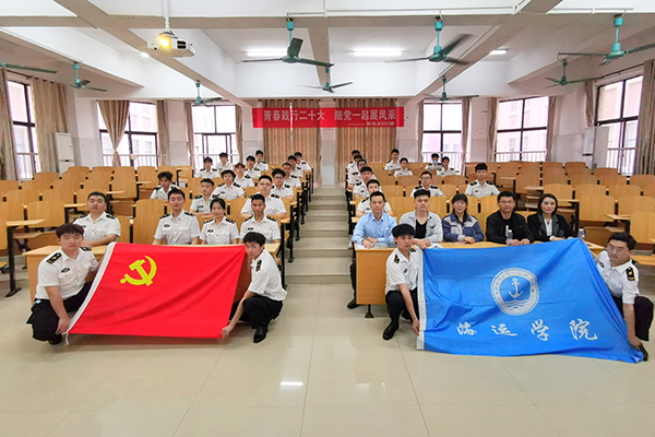 2023年3月20日下午,海运学院船电本201班在7B-215教室举办“青春践行二十大 随党一起展风采”主题宣讲班会;邀请到学院党委书记张小军、半军管老师吴宗兵、班主任李淑波、专业课老师薛瑞元、思政课老师颜文娟、辅导员李国豪参加本次宣讲班会,班会由副班长陈恒昕同学主持。
