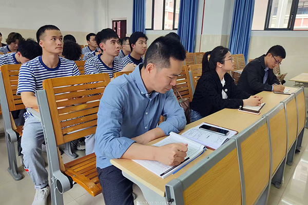 半军事化管理负责人吴宗兵老师强调:一要学法规,懂规矩。重点学习《北部湾大学航海类专业学生半军事化管理实施办法》、《北部湾大学学生纪律处分办法》,做遵规守纪的学生。二要正秩序,强作风。从正规一日生活制度、内务秩序、仪容着装抓起,树好作风形象。三要立标杆,树班风。党员骨干要带头做纪律维护者和学习的模范。四要铸硬功,促学风。把学习作为第一要务,打造学习型班级、学习型宿舍。五要保安全,促和谐。绷紧安全弦,确保安全底线,加强班团结,促进班级和谐。最后,吴宗兵老师寄语全班同学要按习主席的要求立志做有理想、敢担当、能吃苦、肯奋斗的新时代好青年。
