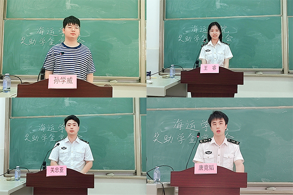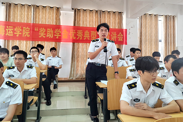 会上,作为奖助学生优秀典型代表,孙学威、王睿、关忠亚和唐竞韬等同学结合自己的学习生活,分别从考研、考公、考证等方面分享了自己的成功经验。其中,以笔试第一名的成绩考取了武汉理工大学研究生的孙学威同学耐心地给同学们讲解了政治、英语、数学和专业课这四个科目的复习方法;同样考研成功的王睿同学给大家分享了考研报考院校的选择及调剂经验;考取了公务员的关忠亚同学分享了公务员考试笔试和面试的技巧及不同地区不同岗位的录取要求;自治区优秀毕业生唐竞韬同学给大家分享了考取船员适任证书的经验,他勉励同学们要珍惜当下,认真学习,不能虚度大学四年的时光。各位代表对黄昊然、袁锦阳等同学的提问进行了耐心的解答。