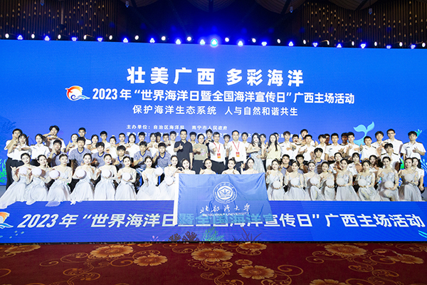 此次活动由自治区海洋局、南宁市人民政府主办,北部湾大学、广西海洋研究院、南宁市北部湾办、防城港市海洋局共同承办,旨在深入学习贯彻党的二十大精神,宣传贯彻习近平生态文明思想,提升全民海洋意识,推动社会公众保护海洋生态,助力建设海洋强国。我校作为承办单位中唯一高校单位,受邀出演开幕式开场与谢幕表演。