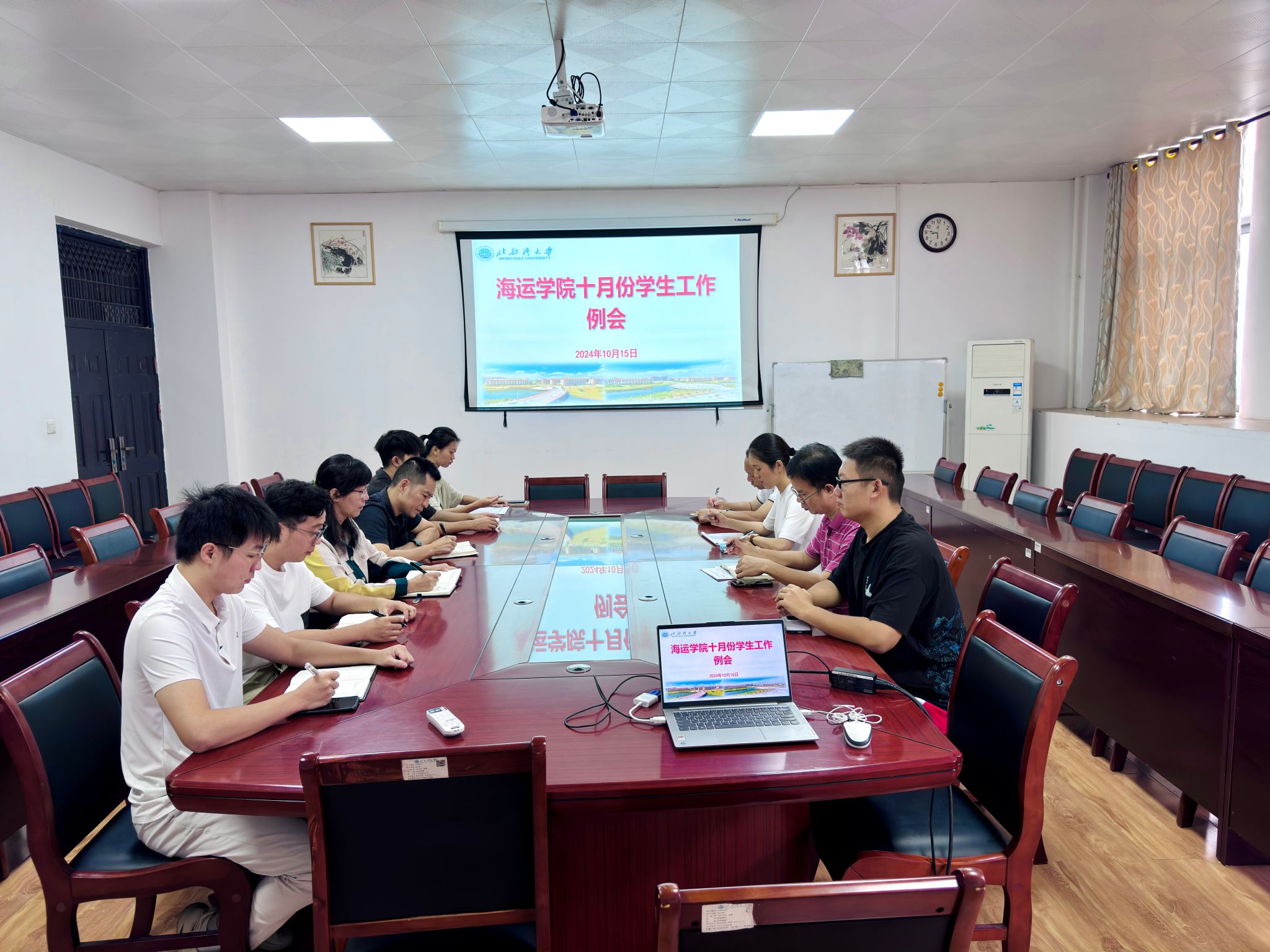10月15日上午,海运学院在7号教学楼219会议室召开2024年10月份学生工作例会。海运学院党委书记杜树营、全体辅导员、半军事化管理人员参加会议,会议由党委书记杜树营主持。