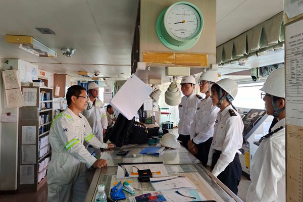 在“中拓好望角(CAPE ZHONGTUO)”轮船上,同学们参观驾驶台、机舱、船员宿舍等区域,深入了解了船舶运行原理及各项设备,轮机员为同学们耐心讲解机舱内管路、主机、辅机、锅炉和泵阀等设备的日常维护要点,注意安全事项,鼓励同学们加强专业理论知识学习,提高英语口语交流能力,充分利用学校实验室提升实践能力,为以后就业打下扎实的基础。