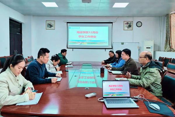 12月18日上午,海运学院在7B-219会议室召开了2024年12月份学生工作例会。会议由党委副书记朱仲纪主持,学院党委书记杜树营、学工办全体辅导员参加了会议。