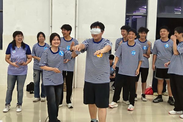 暮色中,学生们在西区田径场集结,随机组成3支战队,推选“船长”与“心理观察员”。“暗航协作挑战”率先打响,“船长”以哨声、呐喊指挥蒙眼“船员”穿越“迷雾航线”,在黑暗摸索中,队员们凭借精准指令与绝对信任,凝聚起团队默契。