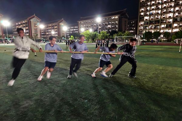 活动深度融合半军事化元素与心理辅导项目。在“谈心交心小会”上,区队长们分享半军事化适应经验,新生围绕“适应半军事化作息”“集体协作”等话题交流,化解陌生感与焦虑;“人力推车”“旋风跑”“四足行”以半军事化小组推进,区队长带领新生喊统一口号、迈整齐步伐,依规完成任务,既练协作默契,又强集体荣誉感,尽显海运学子“令行禁止、团结拼搏”的素养;“公主抱”等互动以“小组轮换”的军事化形式开展,打破隔阂且保障秩序,现场氛围在“严”与“活”中升温。