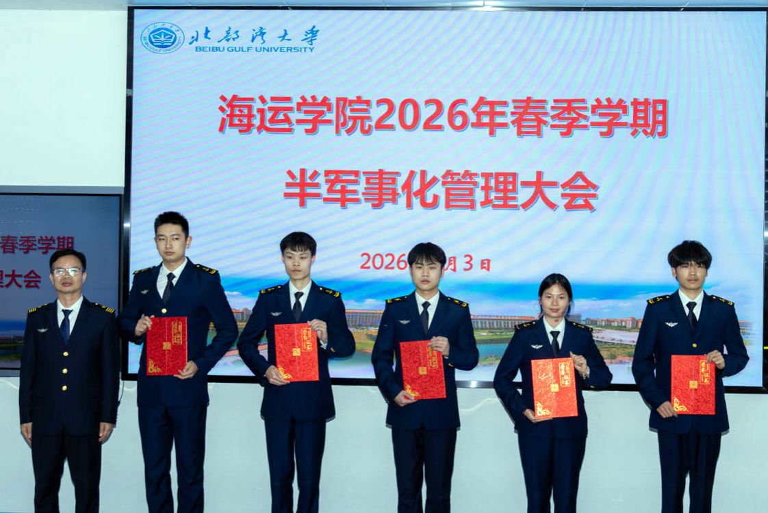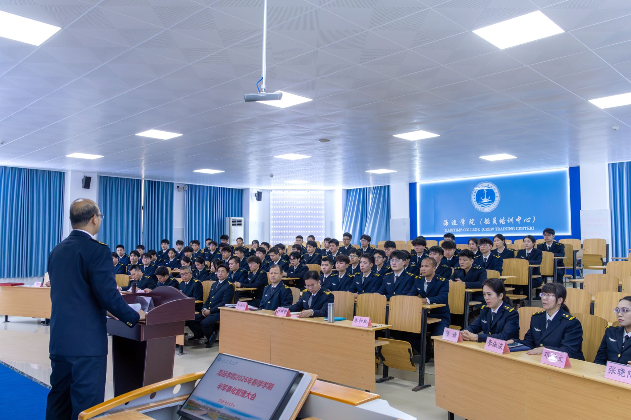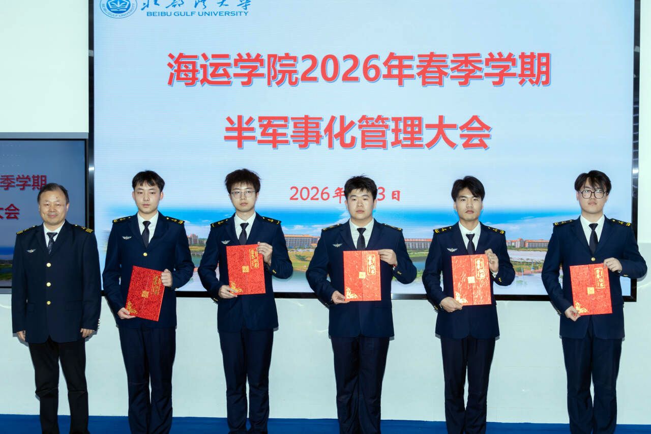 为强化学生纪律意识,规范半军事化管理,明确新学期工作方向,3月3日下午,海运学院2026年春季学期半军事化管理大会在7B215报告厅召开。半军事化管理大队长、大队政委、副政委等各级领导及全体半军事化管理学生干部参会,凝聚管理共识,部署新学期工作。会议由大队副政委朱仲纪主持。