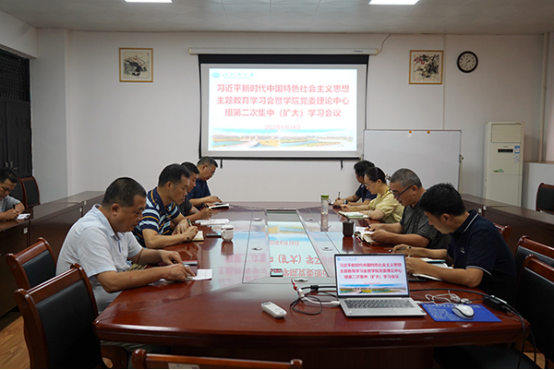 6月19日下午,海运学院在7B-219会议室召开学习贯彻习近平新时代中国特色社会主义思想主题教育学习会暨学院党委理论学中心组第二次集中(扩大)学习会议。张小军书记主持会议并领学,学院全体党委委员和相关人员参加会议。