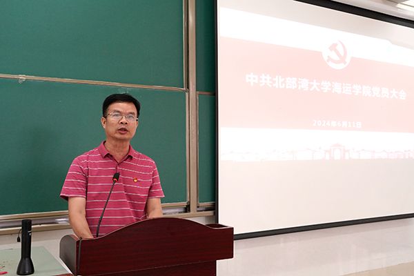 杜树营书记和全体党员一起回顾总结了上届学院党委的主要工作成绩、存在不足以及今后的努力方向。杜树营书记在党委工作报告中指出,在校党委的正确领导下,海运学院党委以习近平新时代中国特色社会主义思想为指导,深入贯彻党的二十大精神,全面贯彻党的教育方针,把牢社会主义办学方向,坚定不移加快落实学校党委提出的发展新任务,团结带领广大党员干部、师生员工,将学院建设成为航海特色鲜明、产教研融合、卓越人才的高水平应用型创新型学院。杜树营书记希望全体党员认真贯彻落实党的教育方针,深刻把握高等教育改革发展规律,坚持立德树人根本任务,紧密围绕“双一流”建设,大力加强专业内涵式建设,持续强化产教融合,求真务实、艰苦奋斗、开拓创新,助力地区经济社会高质量发展和服务向海经济。