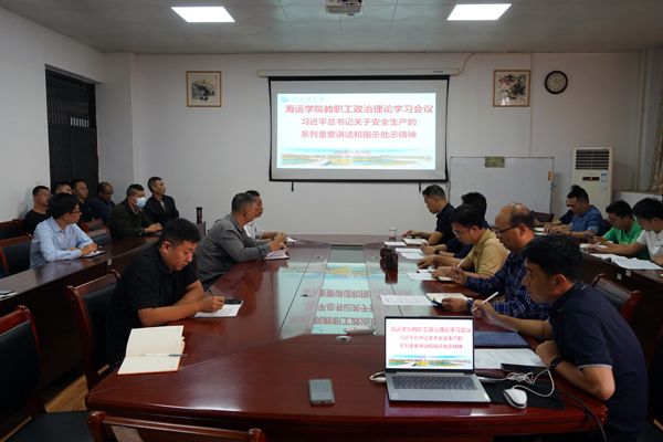 11月19日,海运学院在7B-219会议室召开全体教职工政治理论学习会,杜树营书记带领全体教职工学习习近平总书记关于安全生产的系列重要讲话和指示批示精神。学院全体党政领导和全体教职工参加会议。