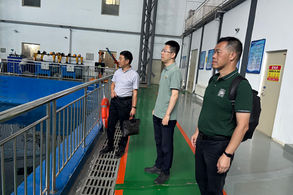 院长助理覃志居与大连海事大学教授熊伟、王海涛等专家就实训基地建设标准与设备采购方案展开研讨。双方认为,高仿真训练设施是人才培养质量的核心保障。另外还实地考察了救助与打捞训练水池、虚拟仿真救援平台等设施,计划引入适配北部湾海域特点的智能模拟系统。