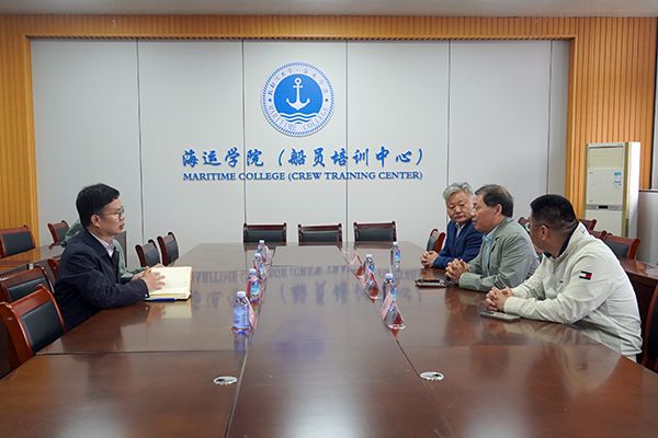 3月3日上午,许学耕轮机长带队,诚安船舶管理有限公司总经理赵锡祥、上海昱平海事服务有限公司张宗安船长一行莅临我院考察交流。学院党委书记杜树营、党委副书记朱仲纪陪同座谈,双方围绕航运人才培养、校企深度合作等议题展开深入交流。