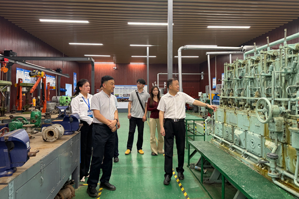 朱芳阳院长一行在尤庆华书记、黎冬楼院长的陪同下,实地考察了海南科技职业大学海事学院轮机工程实验室,观摩了各类实训设备的配置、维护及使用情况,详细询问了实训课程设置、设备实操教学安排、学生实训考核标准等细节,对该实验室的标准化建设、实训设备的先进性及实操教学的规范性给予了高度评价。
