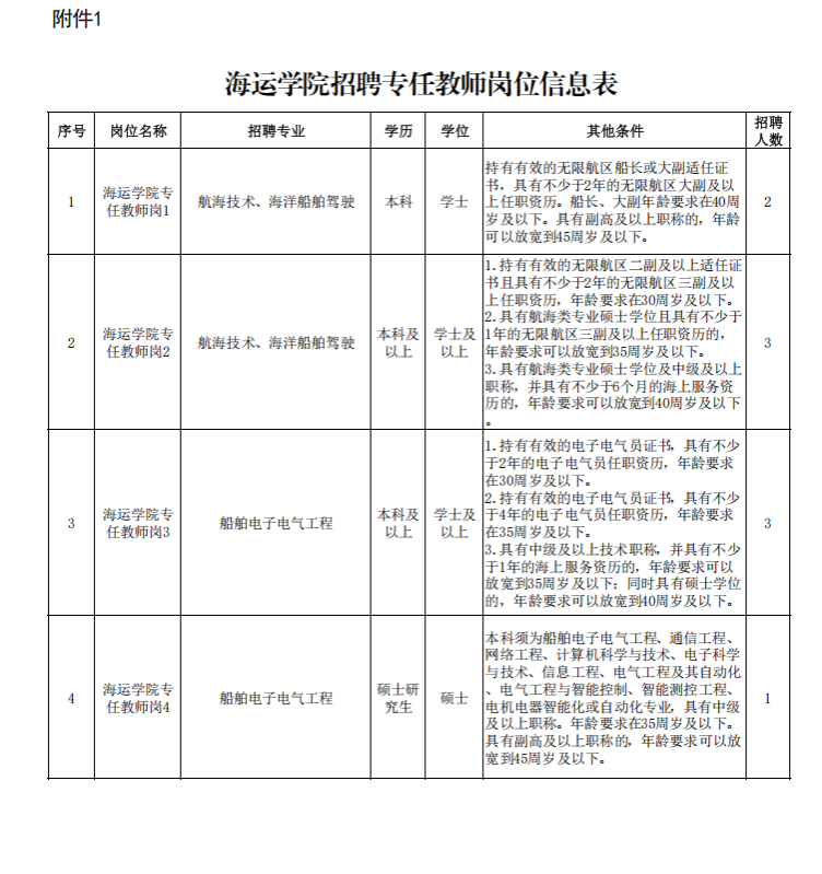 附件:1.海运学院招聘专任教师岗位信息表